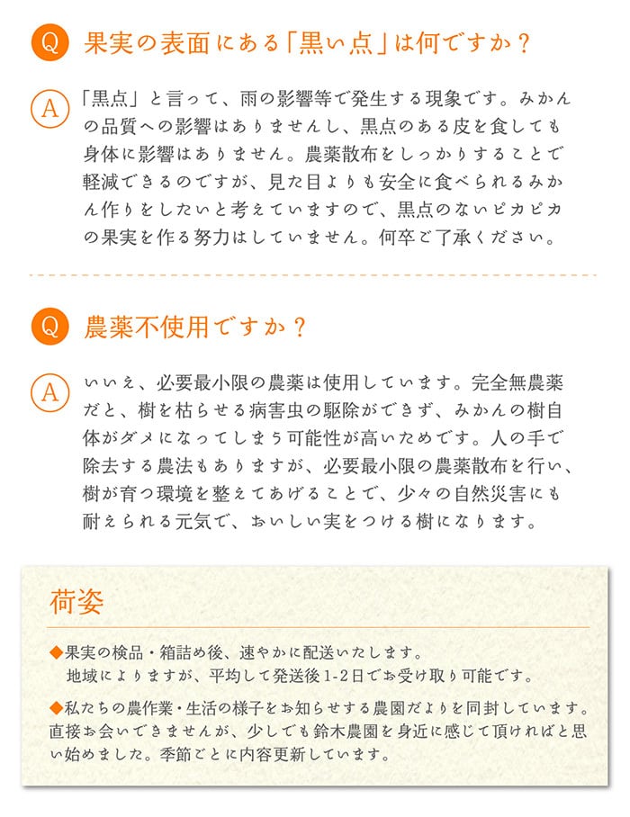 お問い合わせはショップのお問い合わせからお気軽にどうぞ。鈴木農園の訳ありみかんで、心和むひとときをお楽しみください!